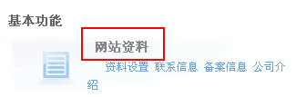 2、進(jìn)入管理主頁(yè)后,在基本功能那里點(diǎn)擊“網(wǎng)站資料