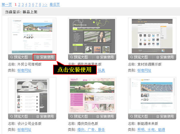3、選中模板后點擊“安裝使用