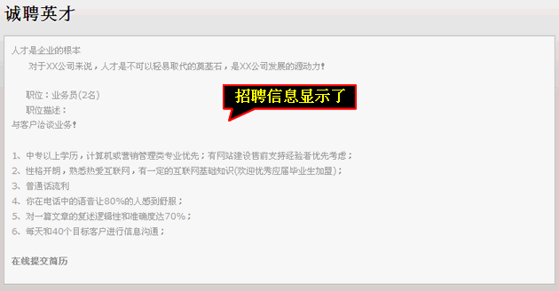 點(diǎn)擊“預(yù)覽”后可以查看招聘信息