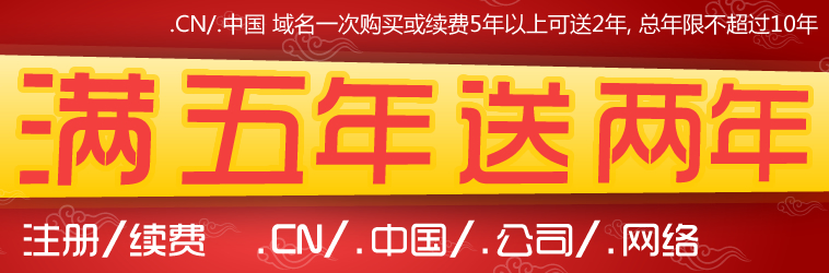 耐思尼克作為ICANN與CNNIC雙認(rèn)證的全球頂級(jí)域名注冊(cè)商,為了回饋廣大用戶長期以來對(duì)耐思尼克的支持和加強(qiáng)中國在國際貿(mào)易交流中的地位,特此推出了“國際頂級(jí)域名注冊(cè)大優(yōu)惠”活動(dòng),凡一次性購買或續(xù)費(fèi).CN/.中國 域名5年以上可送2年, 總年限不超過10年。同時(shí)還為用戶贈(zèng)送價(jià)值超過150元域名展示頁和Whois形象廣告。