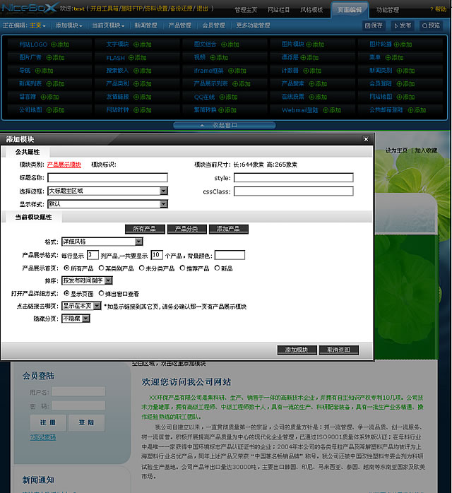可以方便地在網(wǎng)頁(yè)中插入插件、拖放定位和改變插件尺寸,靈活設(shè)置插件邊框風(fēng)格和插件顯示參數(shù),靈活設(shè)置網(wǎng)頁(yè)背景,網(wǎng)頁(yè)排版完全可視化,所見即所得,讓網(wǎng)站制作如同搭積木般便捷易玩;
